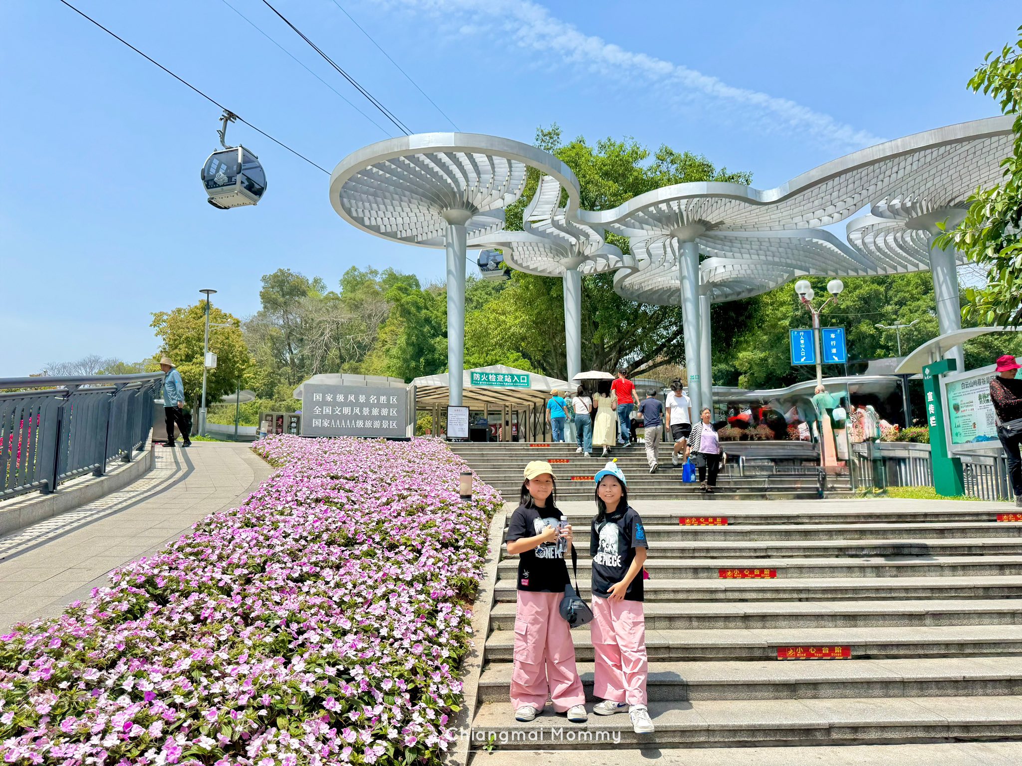 จุดนั่งกระเช้าจะเป็นประตูฝั่งใต้ ให้ลงตรงนี้แต่ถ้าอยากเดินหรือนั่งรถให้ขึ้นทางเหนือไปอีก 400 เมตร เราเลือกนั่งกระเช้าสบายๆ มีวิวสวยๆ สามารถซื้อตั๋วได้ที่นี่ค่ะ มี 2 แบบให้เลือกคือแบบไป-กลับ และขาเดียว เราซื้อแบบขาเดียว ผู้ใหญ่ 25 หยวน เด็ก 13 หยวน จากนั้นกระเช้าจะพาเรามาบนยอดเขาเลยค่ะ สีเส้นทางเดียว พอออกมาก็เจอ KFC บนเขา เราเดินเที่ยวถ่ายรูปแถวนี้สักพักก็ไปที่สวนนกต่อ