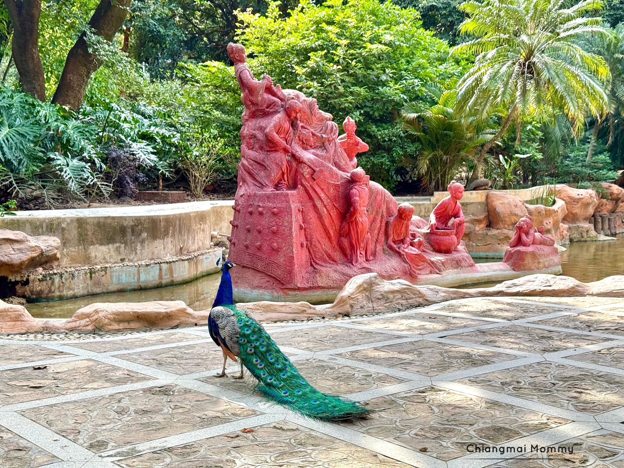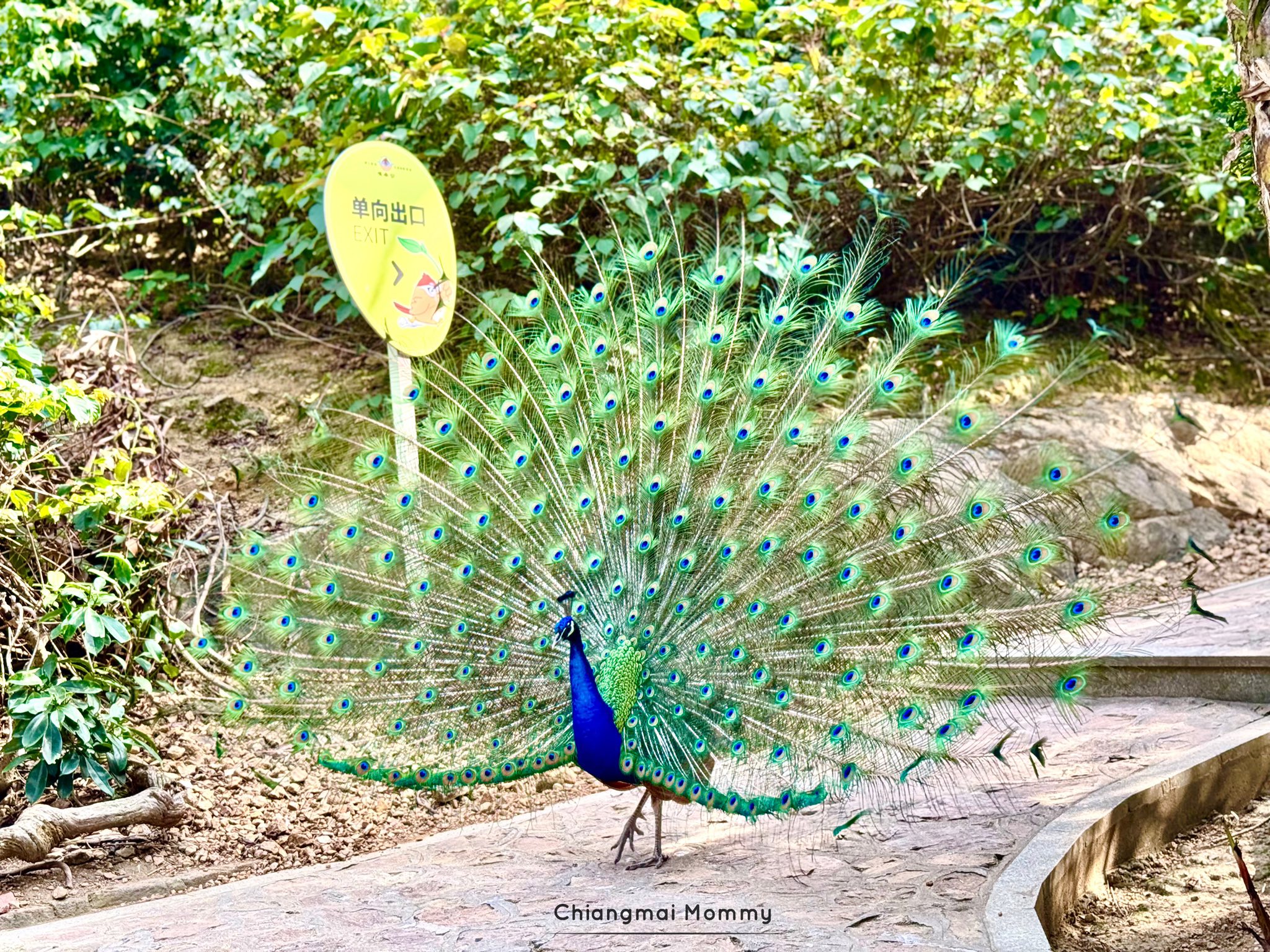ด้านในคือกว้างใหญ่มากโดยเฉพาะสวนนก เราเดินตามทางเดิน มีนก ไก่ หลายสายพันธุ์ที่เลี้ยงปล่อยอิสระ เด็กๆสามารถเดินเที่ยวชมสัตว์อย่างใกล้ชิด ไฮไลท์ที่นี่คือนกยูงมีเยอะมากกกกก แล้วโชว์รำแพนหลายสิบตัว ไม่เคยเห็นนกยูงรำแพนพร้อมกันเยอะขนาดนี้มาก่อนค่ะ เด็กๆตื่นเต้นมาก