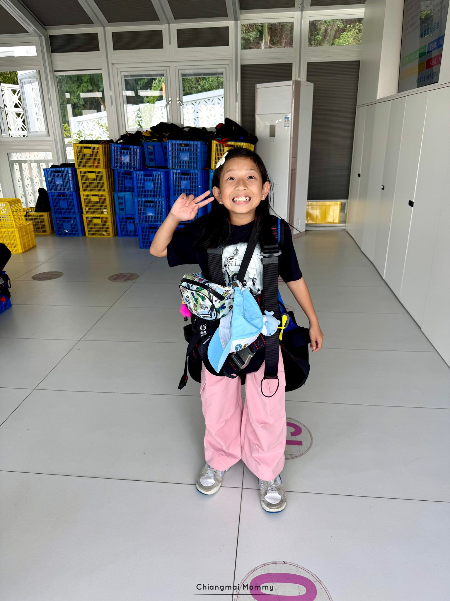 ที่นี่ เค้ามีอุปกรณ์สำหรับเด็กด้วยค่ะ จากนั้นจะพาเราไปชั่งน้ำหนักถ้าเบาจะมีตุ้มน้ำหนักถ่วงไปด้วย หลังจากนั้นก็ออกไปยืนด้านนอก~ ลมเย็นหวิวเลย 555+ ถึงเวลาต้องโดดแล้วใช่ม้ายยยย