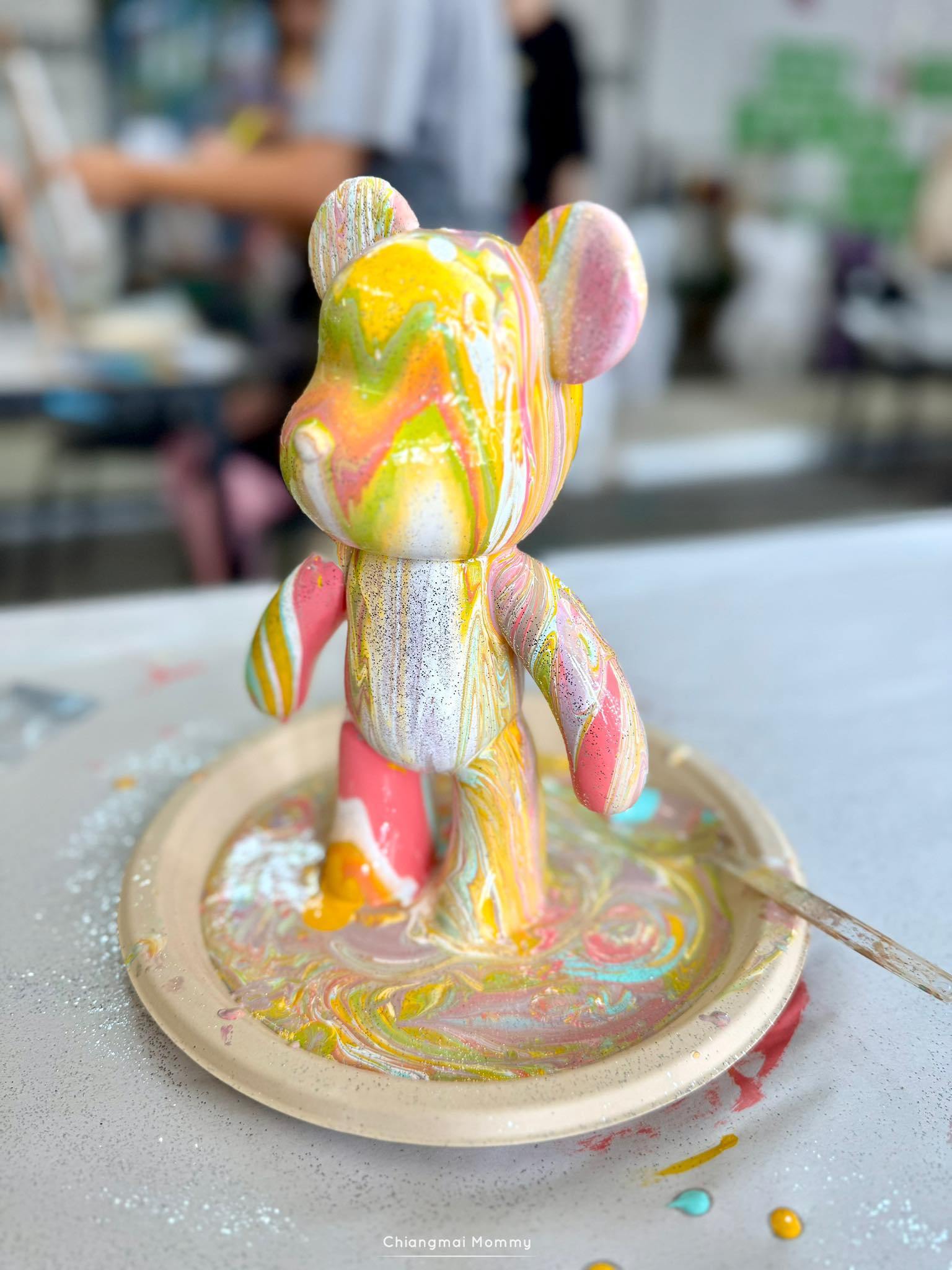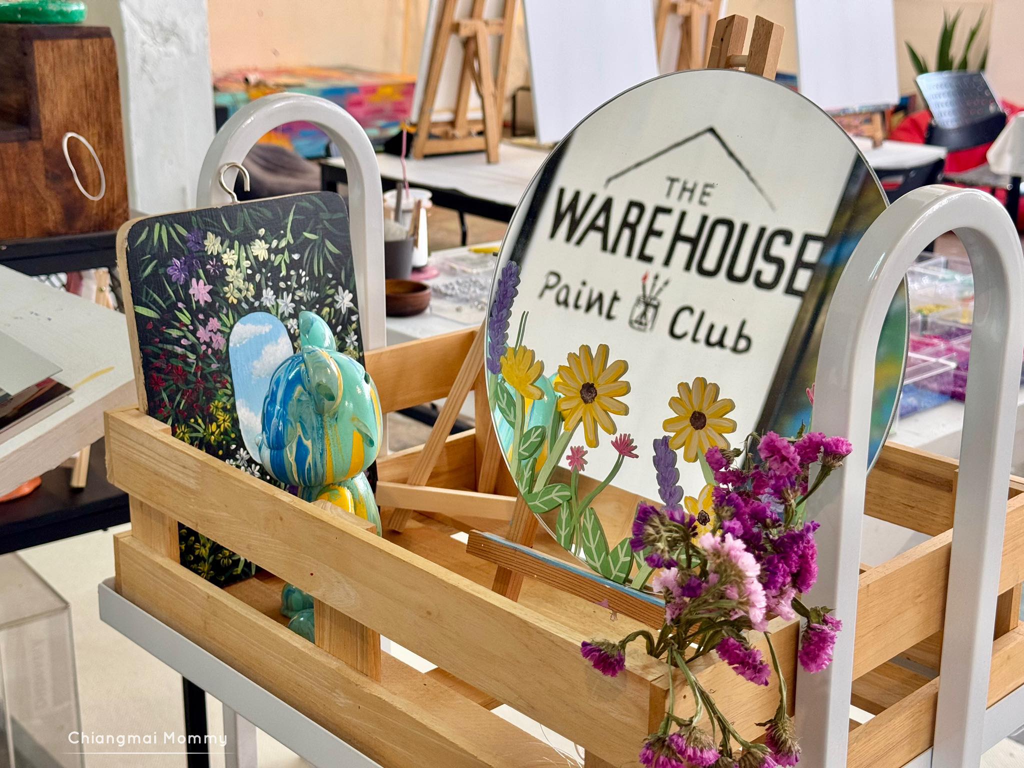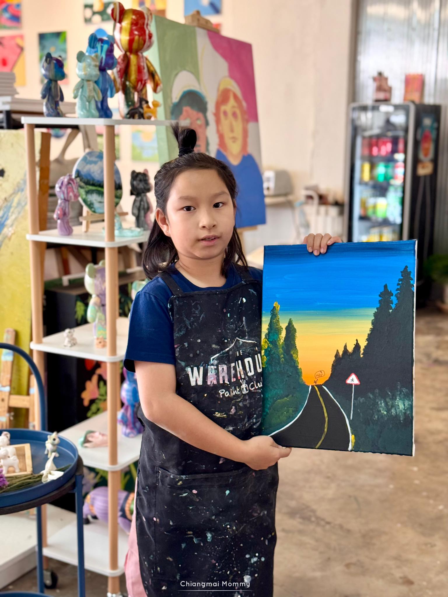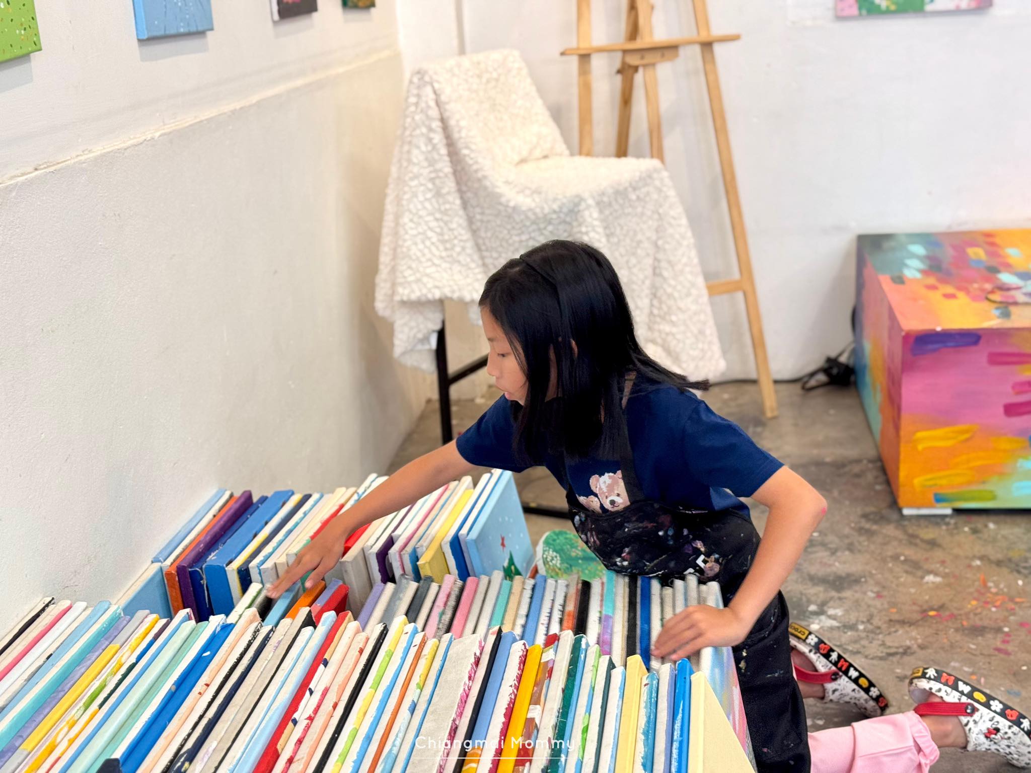 ที่นี่มีกิจกรรมให้เลือกเยอะมากทั้งระบายสีบนเฟรมขนาดต่างๆ งานเทสีหมี ร้อยลูกปัด งานปั้นดินเหนียวพร้อมเพนท์สี เพนท์กระเป๋าผ้ารักษ์โลก ซึ่งทุกคลาสมีคุณครูใจดีช่วยสอนเทคนิคการทำงานศิลปะให้ด้วย คุณครูสอนเข้าใจง่ายและสนุกถูกใจลูกเลย การได้มาทำงานศิลปะแบบนี้ลูกจะใจเย็น เพราะบางชิ้นงานต้องใช้เวลา อดทนและรอคอยกว่าผลงานจะสำเร็จค่ะ บางงานได้กลับบ้านเลย บางงานต้องกลับมาทำต่อ ที่นี่สามารถฝากงานไว้ได้ค่ะ ว่างเมื่อไรค่อยมาทำต่อ