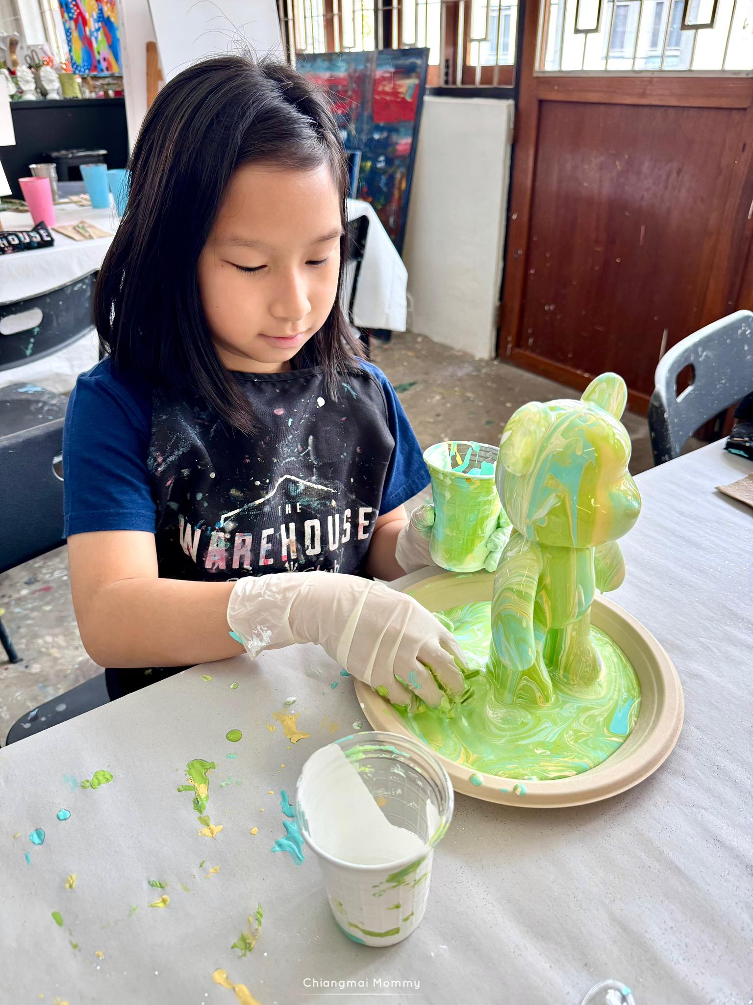 The Wearhouse ถนนราชวงศ์ ช้างม่อย เราเพิ่งเคยมาครั้งแรก พอเห็นละว้าวเลยค่า ตอบโจทย์มาก ห้องกว้าง แสงสว่างกำลังดี อากาศเย็นสบาย มีเปิดเพลงคลอเบาๆ ระหว่างเด็กๆทำงาน บรรยากาศแบบผ่อนคลาย ลูกมีความสุข ทำงานไปฮัมเพลงไปเพลินๆแบบเรื่อยๆไม่ต้องรีบเร่ง ไม่จำกัดเวลา เราสามารถนั่งได้ตั้งแต่คลับเปิด (10:00) จนปิดเลยค่ะ (ควรมาไม่เกิน 15:00 น.เผื่อเวลาทำงานนะคะ)