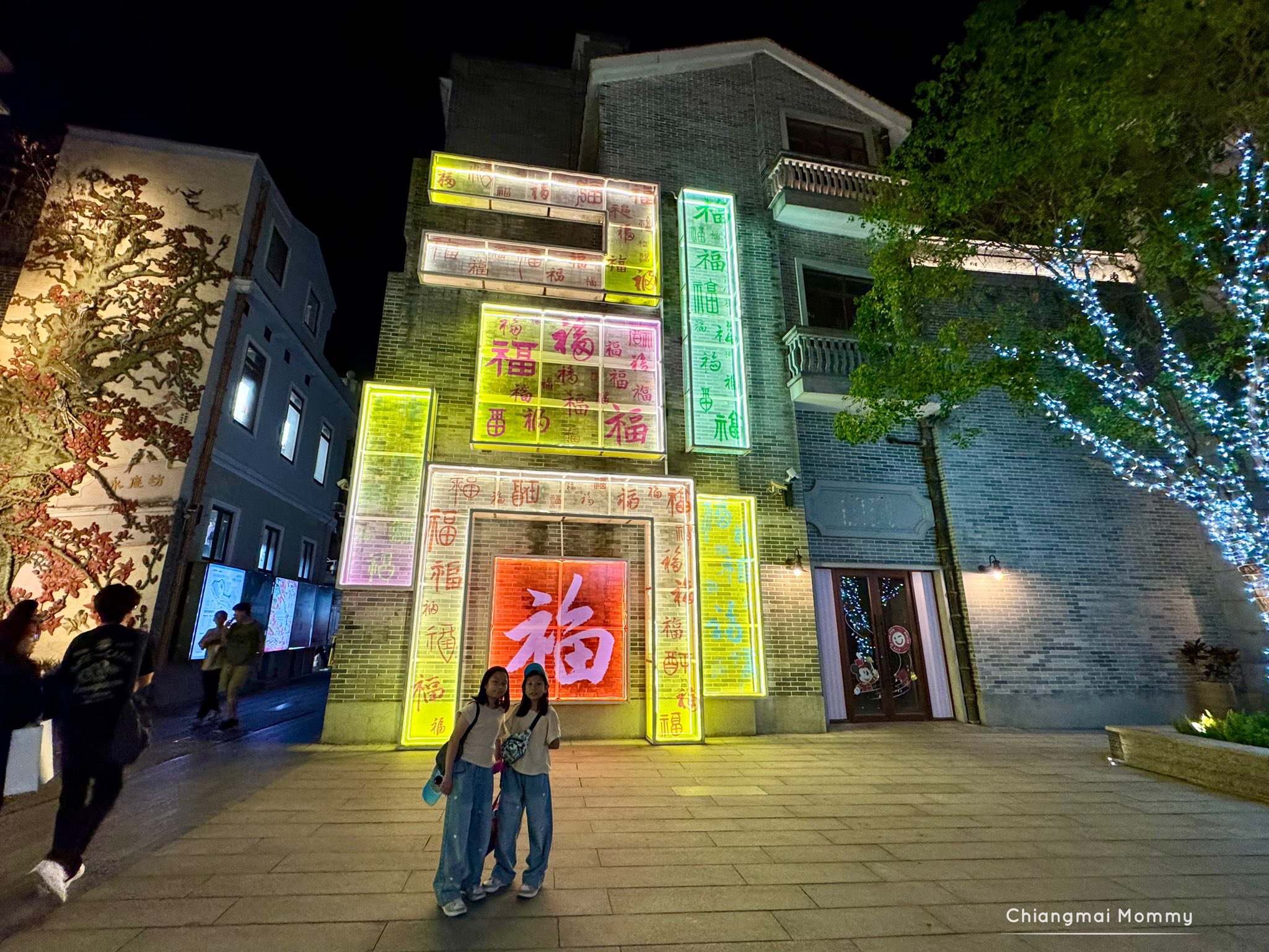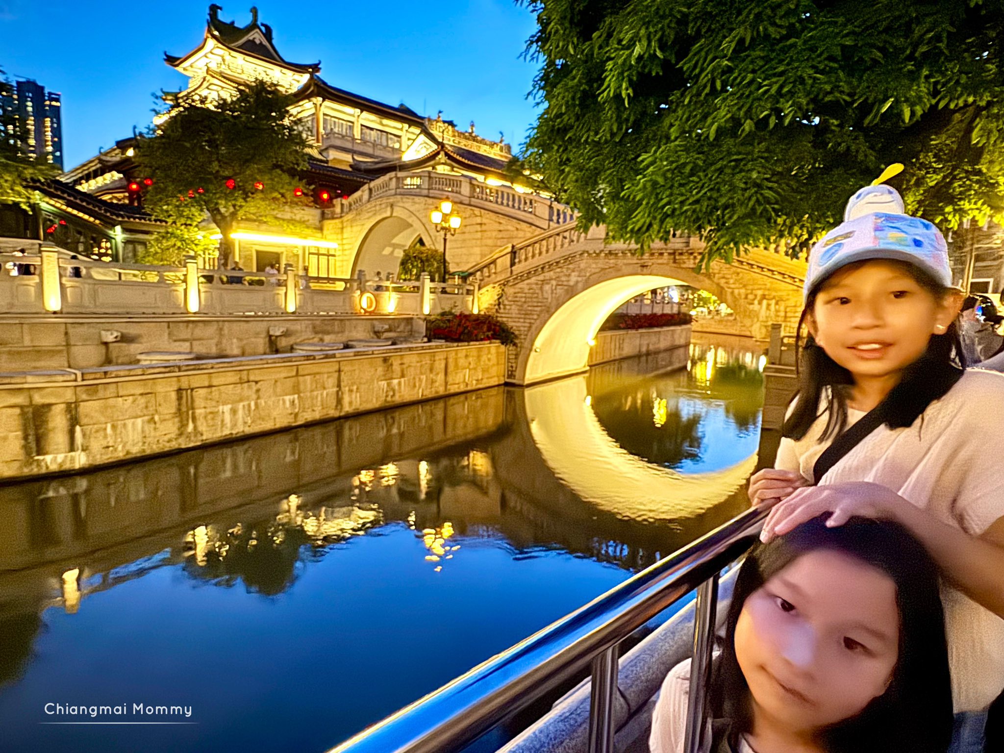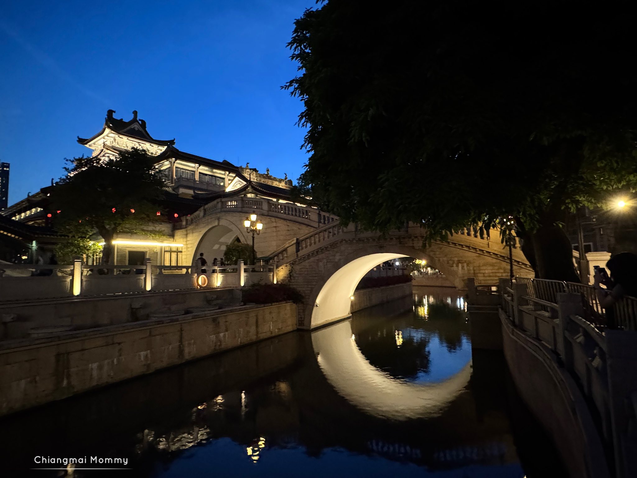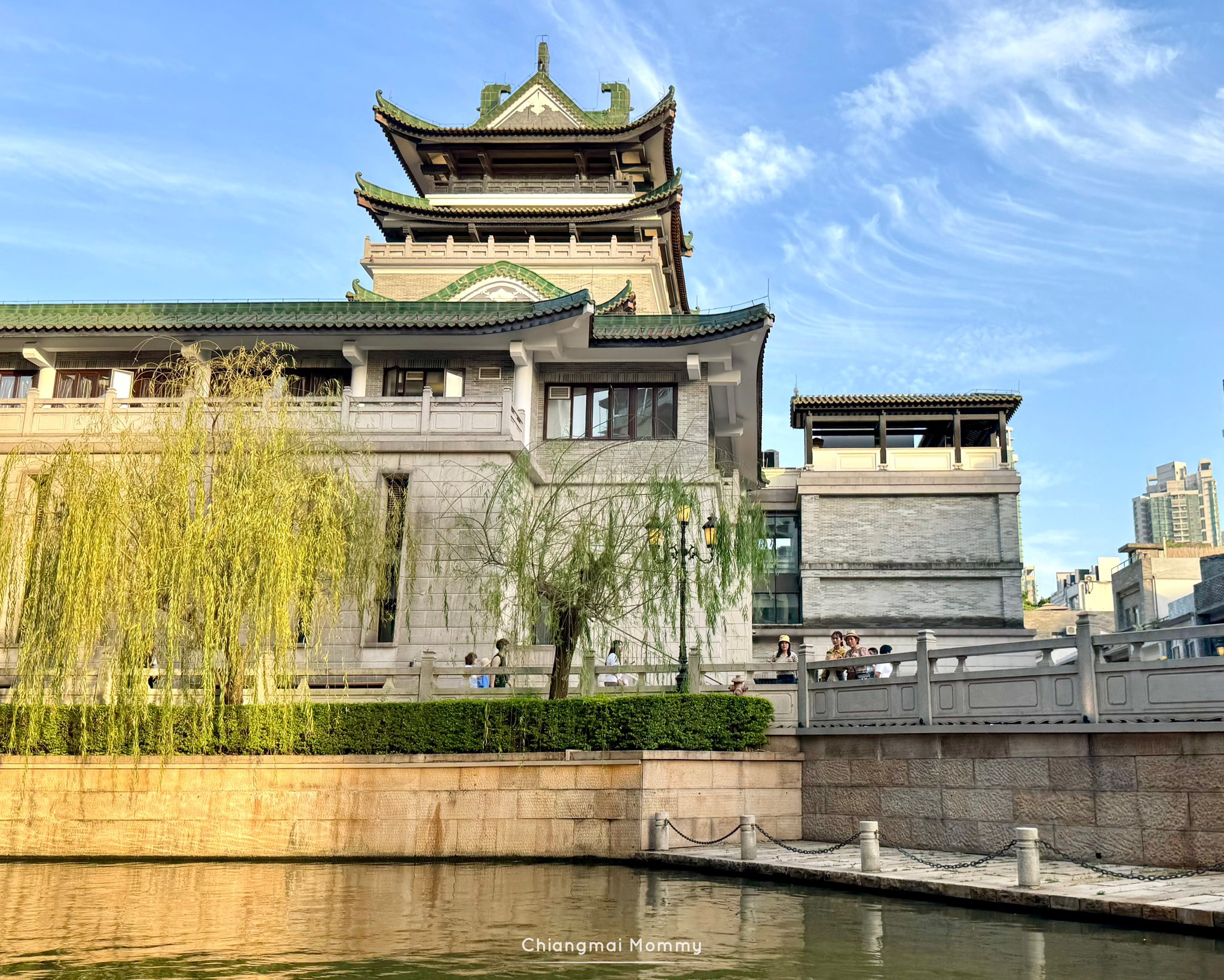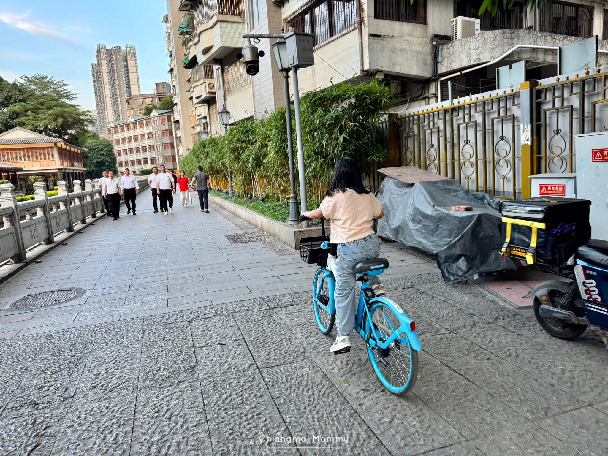 เมื่อมาถึงจุดหมายเราเดินย้อนกลับ จะมีตำแหน่งรถจักรยานให้เช่านะคะ เลือกคันที่สแกน Alipay ได้แต่จะสูงสำหรับเด็กๆหน่อยค่ะ พอถึงจุดที่จักรยานไปไม่ได้ก็ลงเดินต่อ ชุมชนริมคลองเค้าอนุรักษ์ไว้ค่ะ บ้านจะโบราณๆ มีคาเฟ่ พิพิธภัณฑ์ สำนักสอนเขียนพู่กันจีน เดินเล่นสนุกดีนะคะ เพราะเรารอเค้าเปิดไฟเพื่อที่จะไปถ่ายรูปไฮไลต์ สะพานพระจันทร์แถวๆพิพิธภัณฑ์ศิลปะการแสดงงิ้วโบราณค่ะ