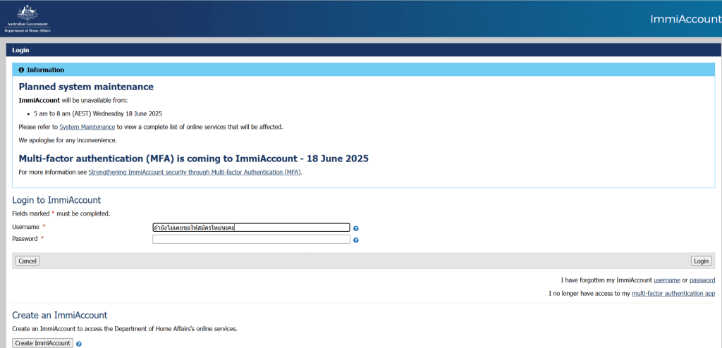 กด ImmiAccount (ถ้ายังไม่มีให้สมัครใหม่ค่ะ)