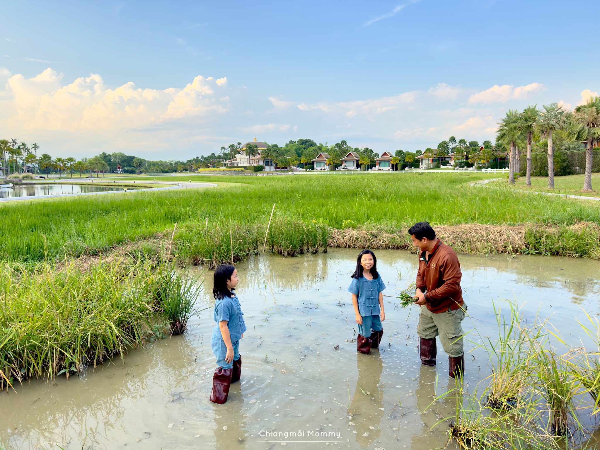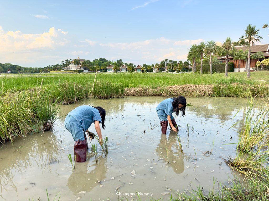 Rice Planting ไฮไลท์ของกิจกรรมคือการปลูกข้าวในแปลงนาสาธิต เด็กๆได้ลองดำนา ปักต้นกล้า ทั้งจุ่มทั้งล้ม สนุกกันมาก ตอนแรกไม่กล้าลงเล่นแต่เค้ามีรองเท้าบูทให้สวมค่ะ