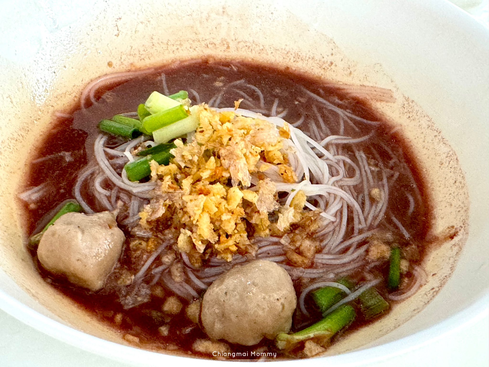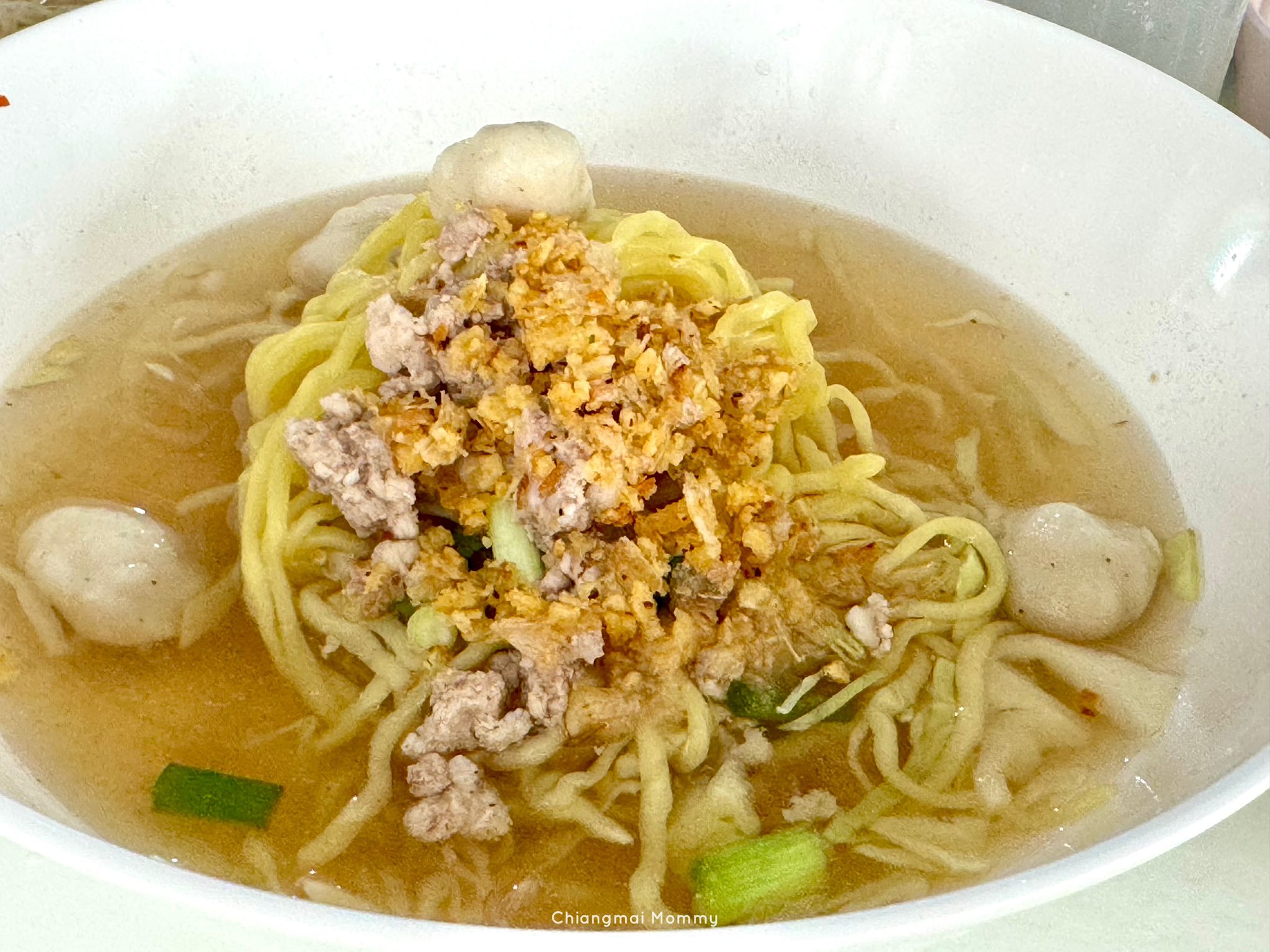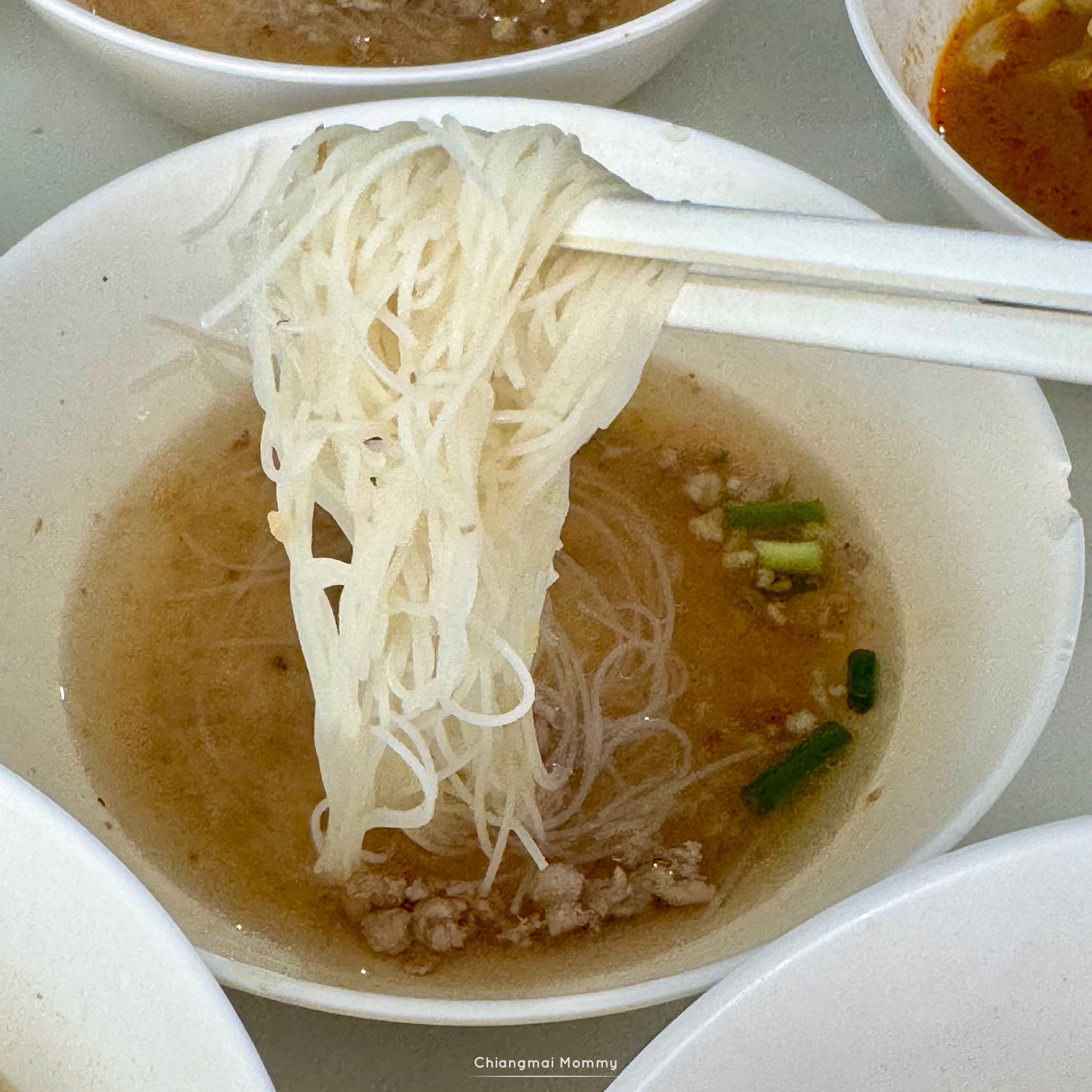 ก๋วยเตี๋ยวมี 2 แบบ น้ำตกกับน้ำใส มีหมูกับเนื้อ หมูจะเป็นหมูสับแม่ว่าอร่อยดี ส่วนเนื้อได้ลูกชิ้นแป้งจิ๋วๆมา 2 ลูก แล้วแต่คนชอบแต่สำหรับเราชอบหมูสับ เลือกเส้นได้ เส้นเล็ก เส้นใหญ่ เส้นหมี่ ยกเว้นเส้นบะหมี่จะ 15 บาทต่อชาม และได้ชามใหญ่