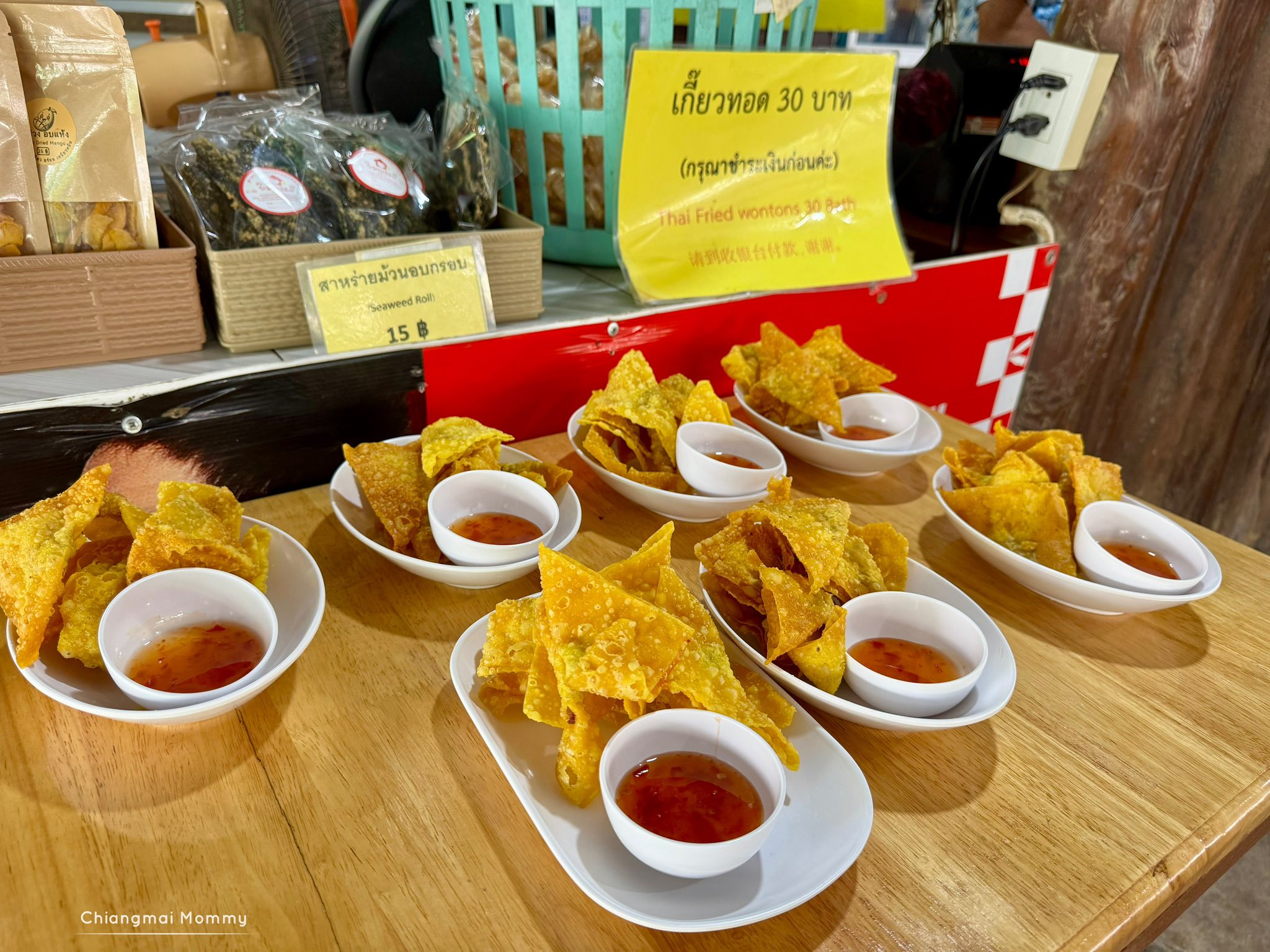 ข้าวซอยไก่อยู่ที่ 25 บาทต่อชาม ผักสดฟรี เกี้ยวทอด 30 บาท น้ำแข็งแก้วละ 1 บาท น้ำฟรี ยังมีหมูสเตะ อร่อยๆ เราเลือกจานเล็ก 9 ไม้ 50 บาท