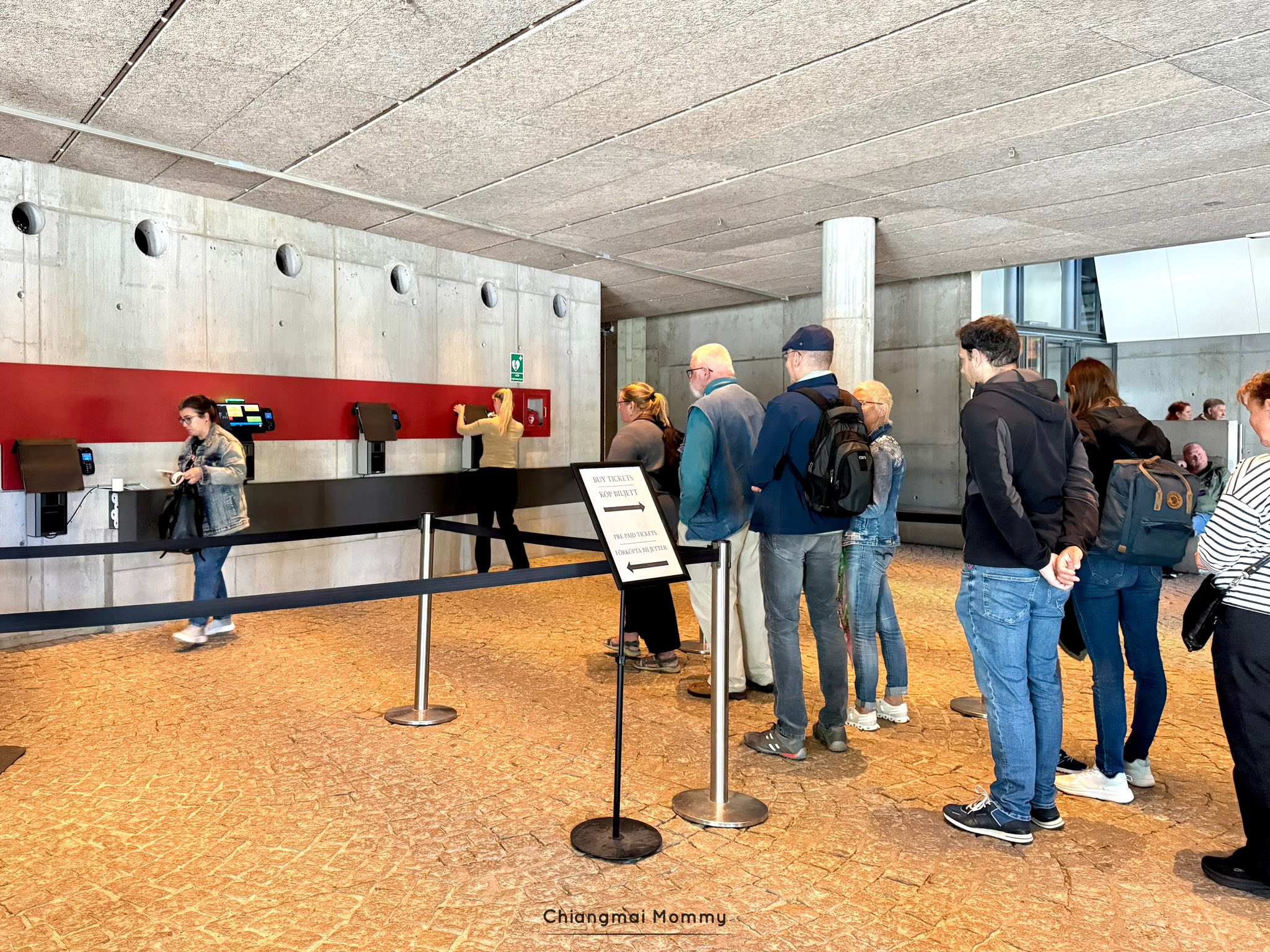 แนะนำว่าให้ซื้อตั๋วก่อนนะคะเพราะที่นี่แบ่งคิวเป็นสองแถว แถวที่จองตั๋วแล้วกับแถวที่ยังไม่ได้จองตั๋ว เราต่อแถวที่มีตั๋วแล้วยังคิวยาวเลยค่ะ แต่ยังดีที่ขยับไว ส่วนอีกฝั่งเห็นแล้วท้อใจ แต่ละคนต้องกดซื้อตั๋วอัตโนมัติทีละคิวจะเสียเวลาค่ะ