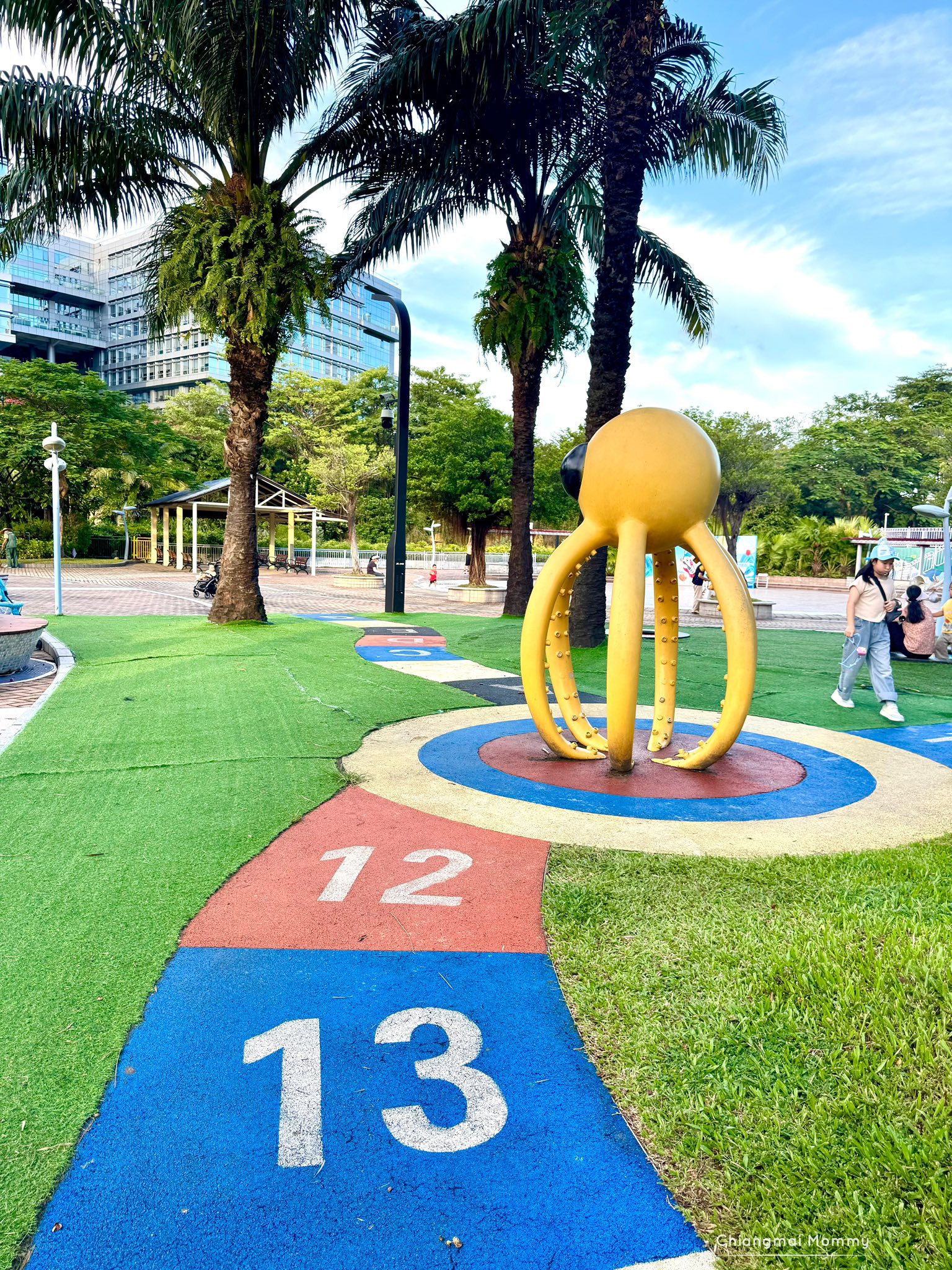 ที่นี่เป็นสวนสาธารณะสำหรับเด็ก มีที่เดินให้ออกกำลังกาย ข้างในยังกว้างใหญ่เข้าไปได้อีกค่ะ แต่เด็กๆเหนื่อยแล้วเลยให้พักเดินเล่นที่นี่ มีห้องน้ำ มีสนามเด็กเล่นให้เล่น แต่เก่าหน่อยค่ะ