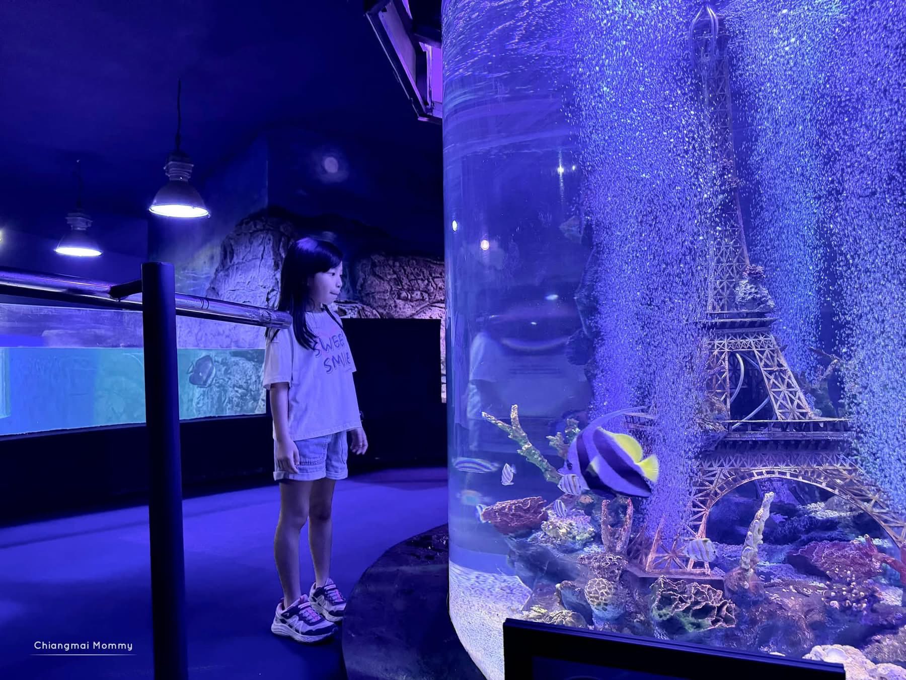 -มีอะควาเรี่ยม (Aquarium) จัดแสดงปลาและสัตว์น้ำสายพันธุ์ต่างๆ อุโมงค์ปลาและโชว์ให้อาหารปลา