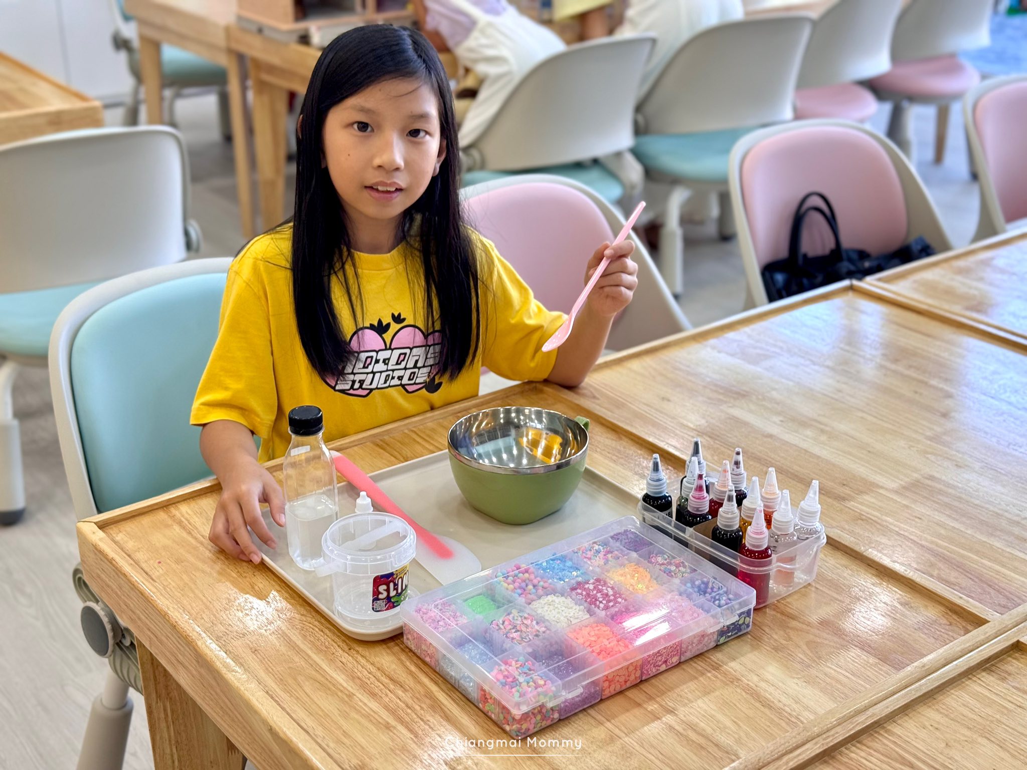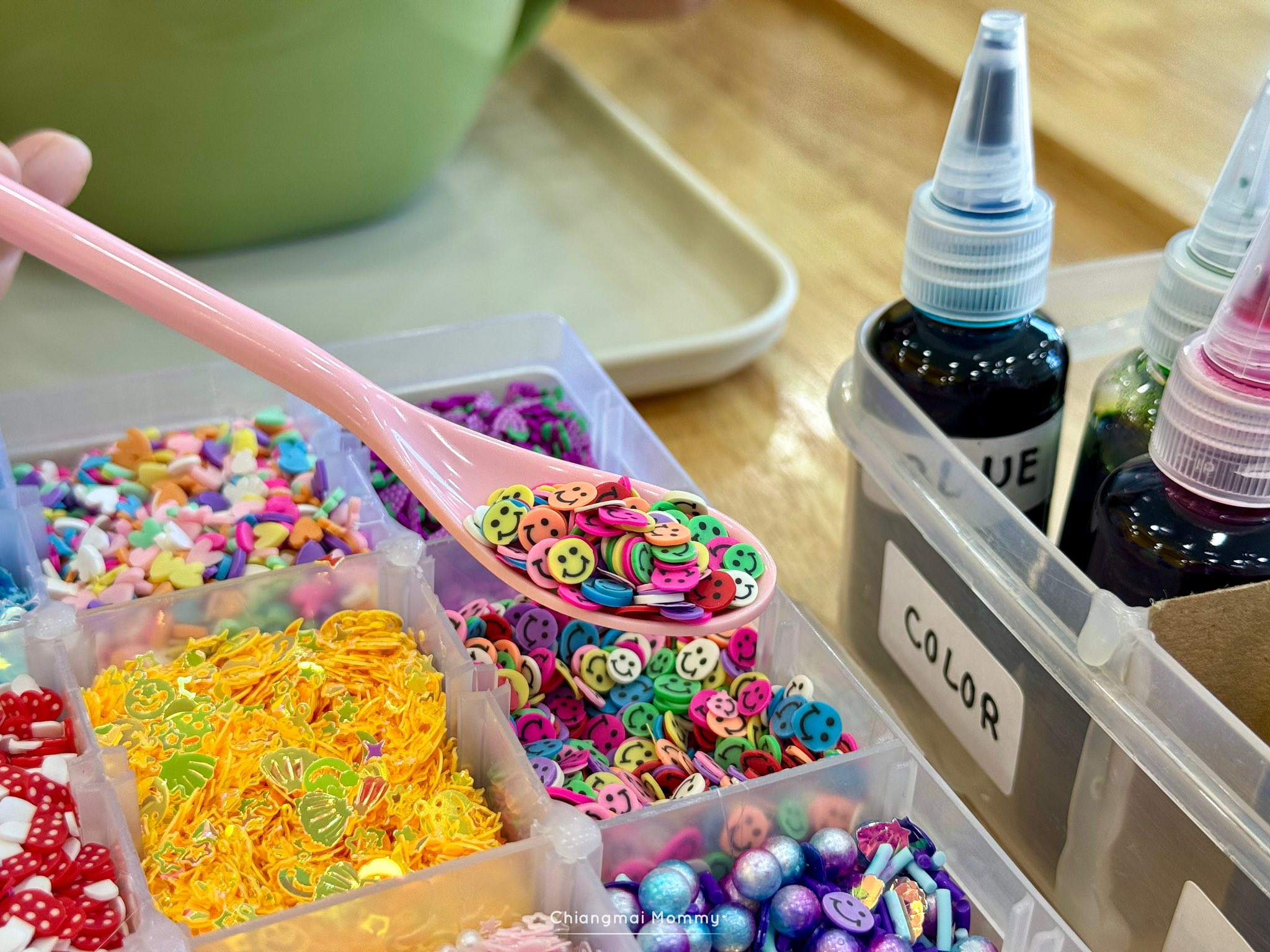 Slime ที่เป็นออแกนิคสามารถเลือกกลิ่น สี ท็อปปิ้งได้ตามไอเดียเด็กๆ เลยค่ะ จะทำแบบใสหรือเนื้อ Marshmellow นุ่มๆฟูๆ เล่นสนุกขึ้นยิ่งกว่าเดิม