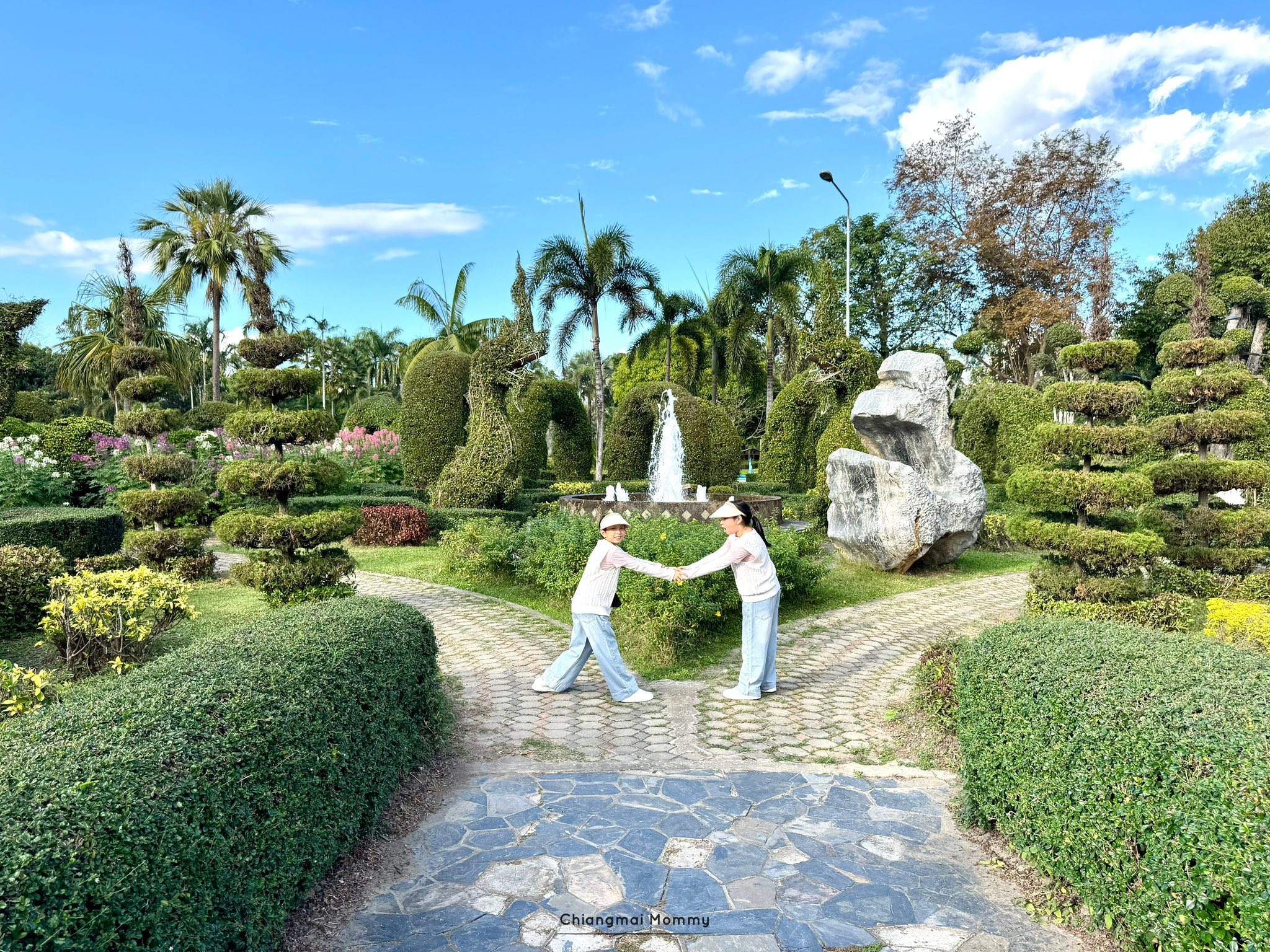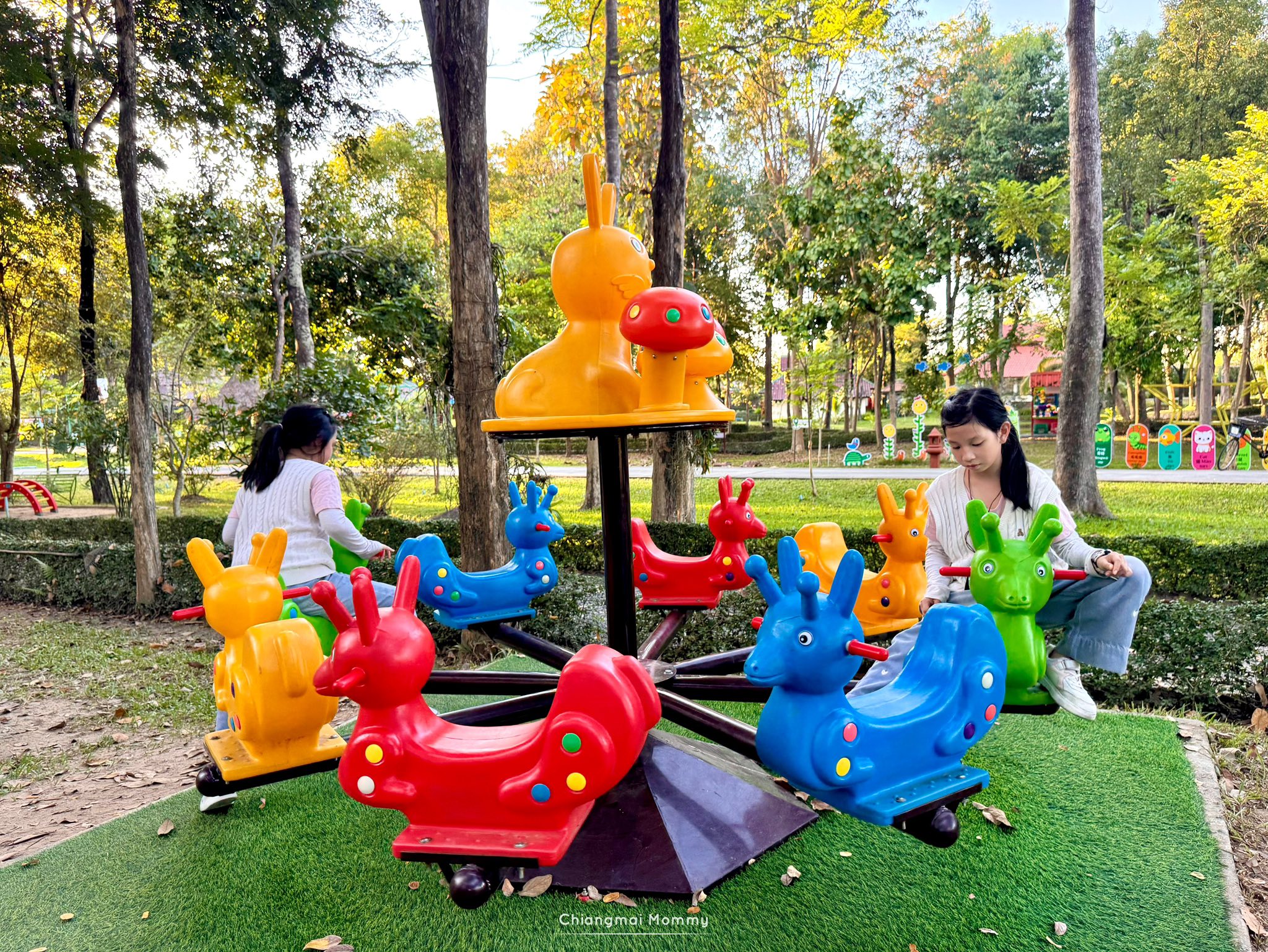 ช่วงเช้าชวนเด็กๆไป #ปั่นจักรยาน เที่ยวชมสวนรับลมธรรมชาติ Botanic Garden เรียนรู้พันธุ์พืชชนิดต่างๆ ทั้งสวนหิน สวนแคนตัส พืชดิบชื้น ไม้ดัด สวนดอกไม้กินได้ สวนสมุนไพร และอื่นๆบนพื้นที่กว่า 300 ไร่ ที่นี่มีบริการทั้งจักรยานเด็กและจักรยานผู้ใหญ่ ซึ่งมีเบาะนั่งซ้อนสำหรับเด็กเล็กด้วยนะคะ เส้นทางปั่นปลอดภัย (หรือจะนั่งรถรางชมสวนก็ได้ค่ะ) ระหว่างทางแวะเรียนรู้ชีวิตสัตว์ ที่สวนสัตว์เล็ก Mini Zoo มีทั้งม้าแคระ อูฐ ควาย นกกระจอกเทศ และสัตว์อื่นๆอีกมากมาย ชวนลูก #ป้อนอาหารสัตว์ อย่างใกล้ชิด