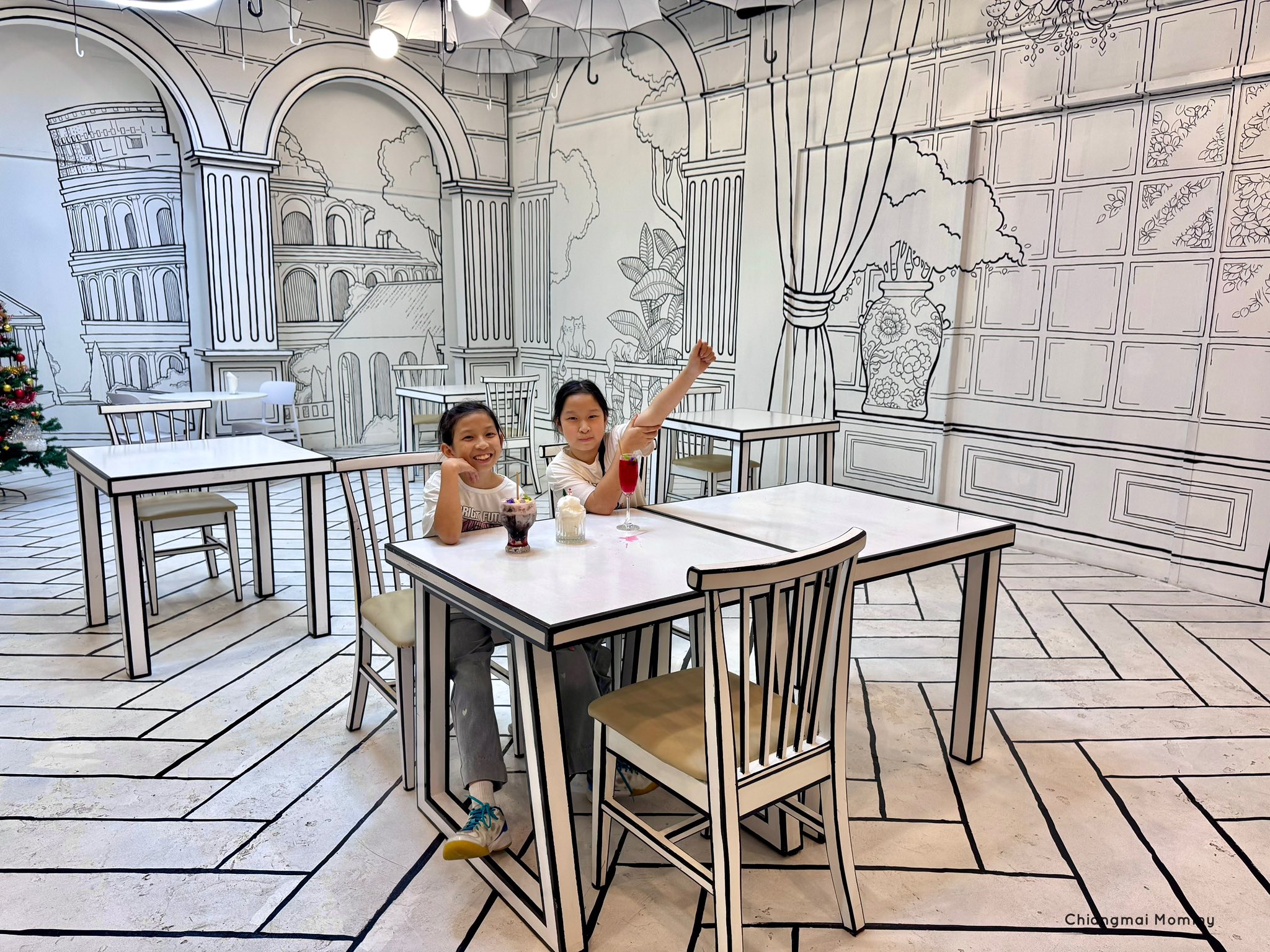 นอกจากนี้ยังมีโซนคาเฟ่ 2D เหมือนหลุดเข้ามาอยู่ในหนังสือ 2 มิติ น่ารักและว้าวมากค่ะ เด็กๆสามารถเลือกชมได้ทั้ง 2 โซนเลยนะคะ
