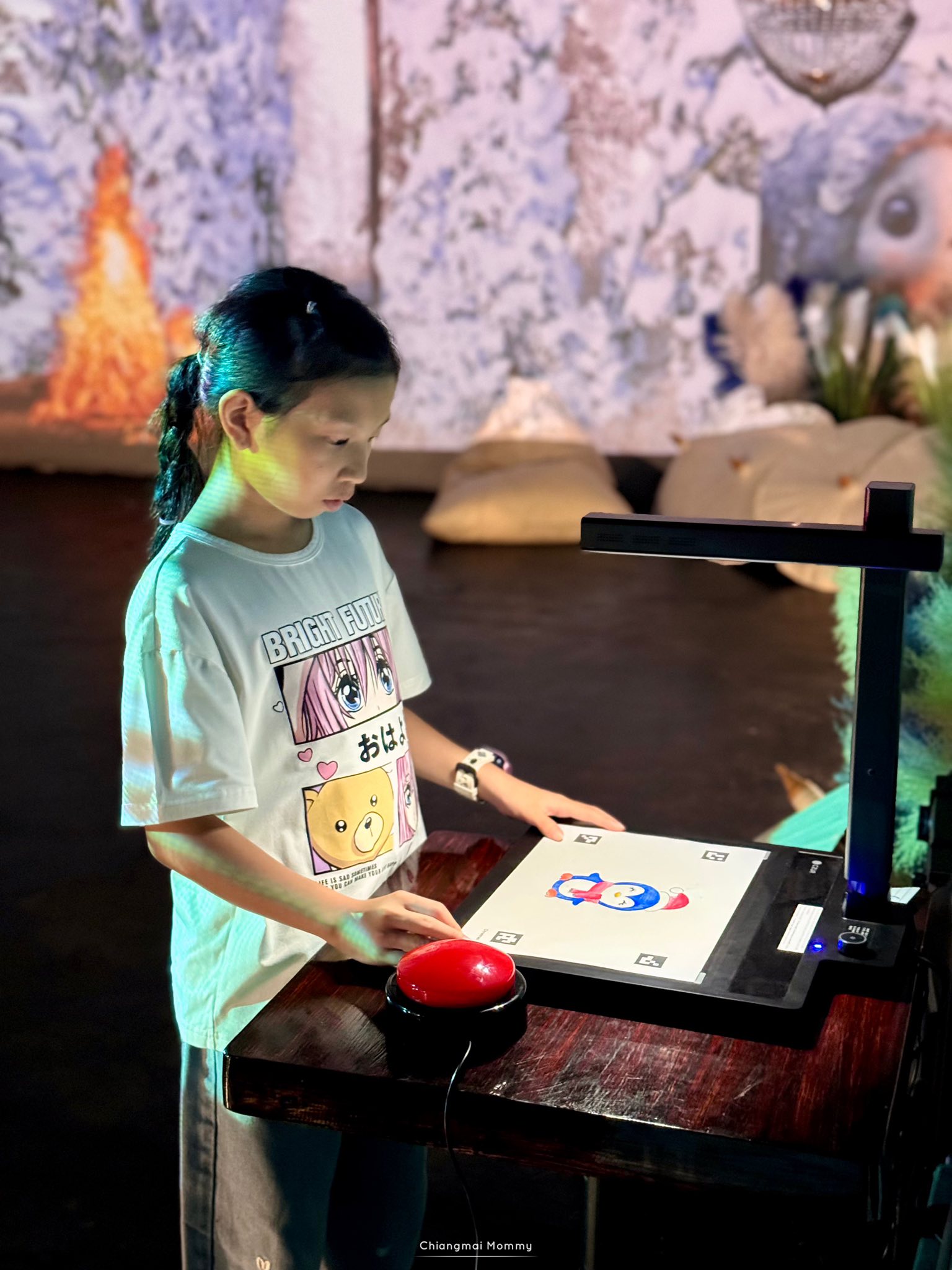 ยิ่งตอนนี้มีกิจกรรมใหม่ให้เด็กๆได้วาดรูประบายสีแล้วนำภาพไปสแกน จากนั้นผลงานศิลปะของเด็กๆก็จะไปปรากฏบนจอภาพขนาดใหญ่ ที่สามารถเคลื่อนไหวได้ มีชีวิตชีวา เสมือนจริง ลูกสนุกและตื่นเต้นมากเลยค่ะ