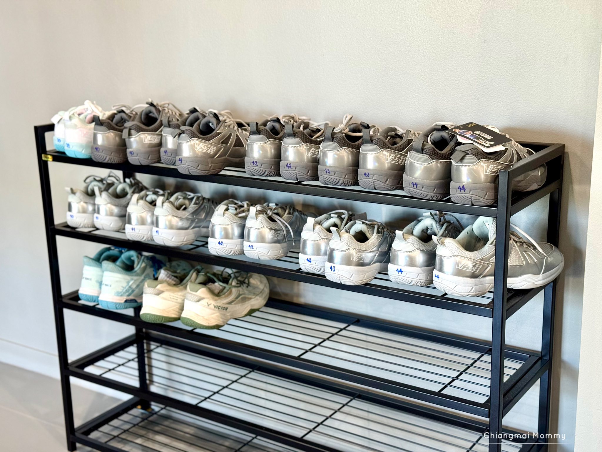 รองเท้าต้องเป็นรองเท้าสำหรับแบดเท่านั้นนะคะ แต่ไม่ต้องห่วงค่ะ ที่สนามมีให้เช่าทุกอย่างค่ะ รองเท้า ไม้แบด นี่ไปดูรองเท้ายังใหม่กริบป้ายยังไม่ได้แกะเลยค่ะ