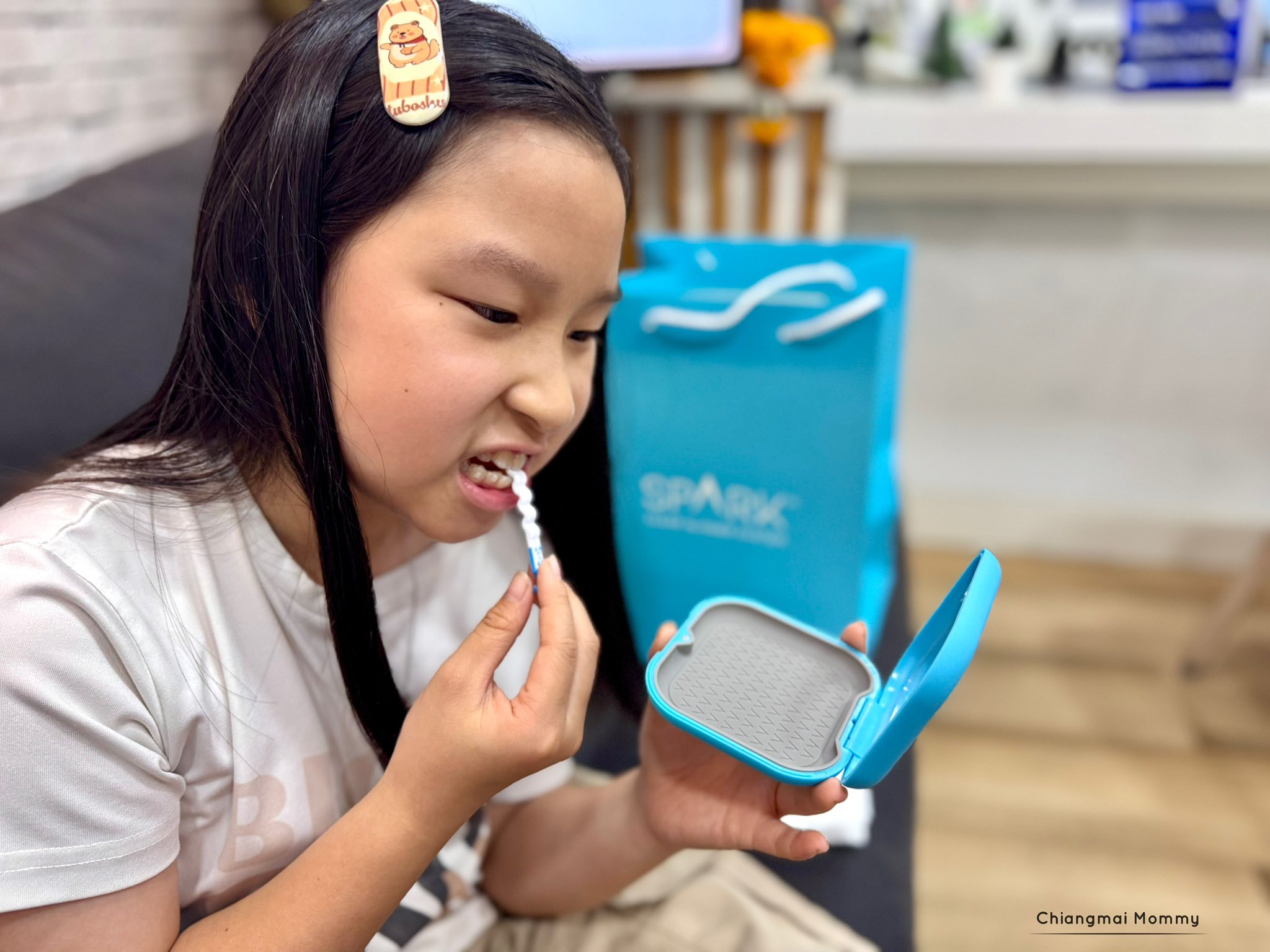 หลังจากหาข้อมูลเรื่องการจัดฟันในเด็กมาอย่างเยอะ ปรึกษาเพื่อนๆแม่ๆที่เป็นหมอฟันก็หลายคน สุดท้ายสรุปเลือกทำการจัดฟันแบบใส (Clear Aligners) ของ SPARK ซึ่งเป็นนวัตกรรมการจัดฟันแบบใหม่จากอเมริกา น่าจะเหมาะกับไลฟ์สไตล์ของบ้านเราค่ะ