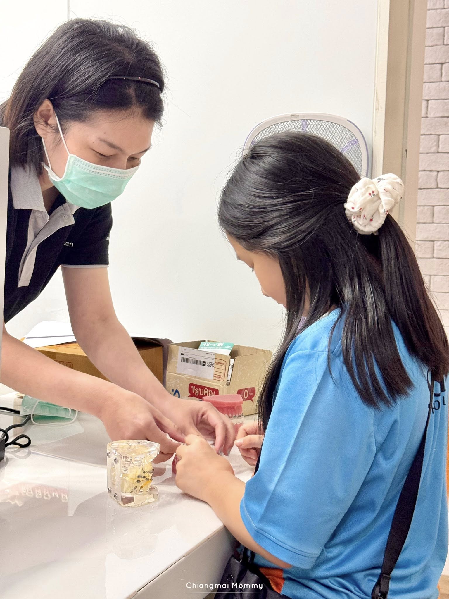 #ฝึกใส่เครื่องมือ จากนั้นคุณหมอก็อธิบายวิธีการใส่เครื่องมือ มีลักษณะเป็นพลาสติกสวมครอบฟันใสๆ ซึ่งจะอยู่ในถุงปิดผนึกที่มีตัวเลขกำกับตามสัปดาห์ตามแผนที่ออกแบบไว้ เด็กๆสามารถเปลี่ยน-ใส่-ถอดด้วยตัวเอง และมี Chewy ให้กัด 3 นาทีต่อวันเพื่อให้เครื่องมือแนบกับฟัน ใช้งานง่าย สะดวก ไม่ยุ่งยากเลยค่ะ