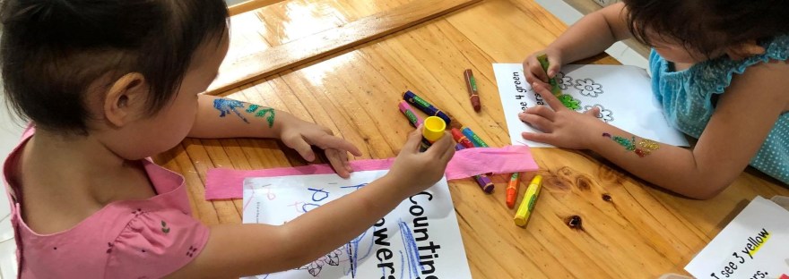 วันนี้เด็กๆได้ลงมือทำหนังสือเอง เริ่มตั้งแต่ ระบายสี ได… อ่านต่อ ✦ Counting Flowers book : หนังสือทำมือ